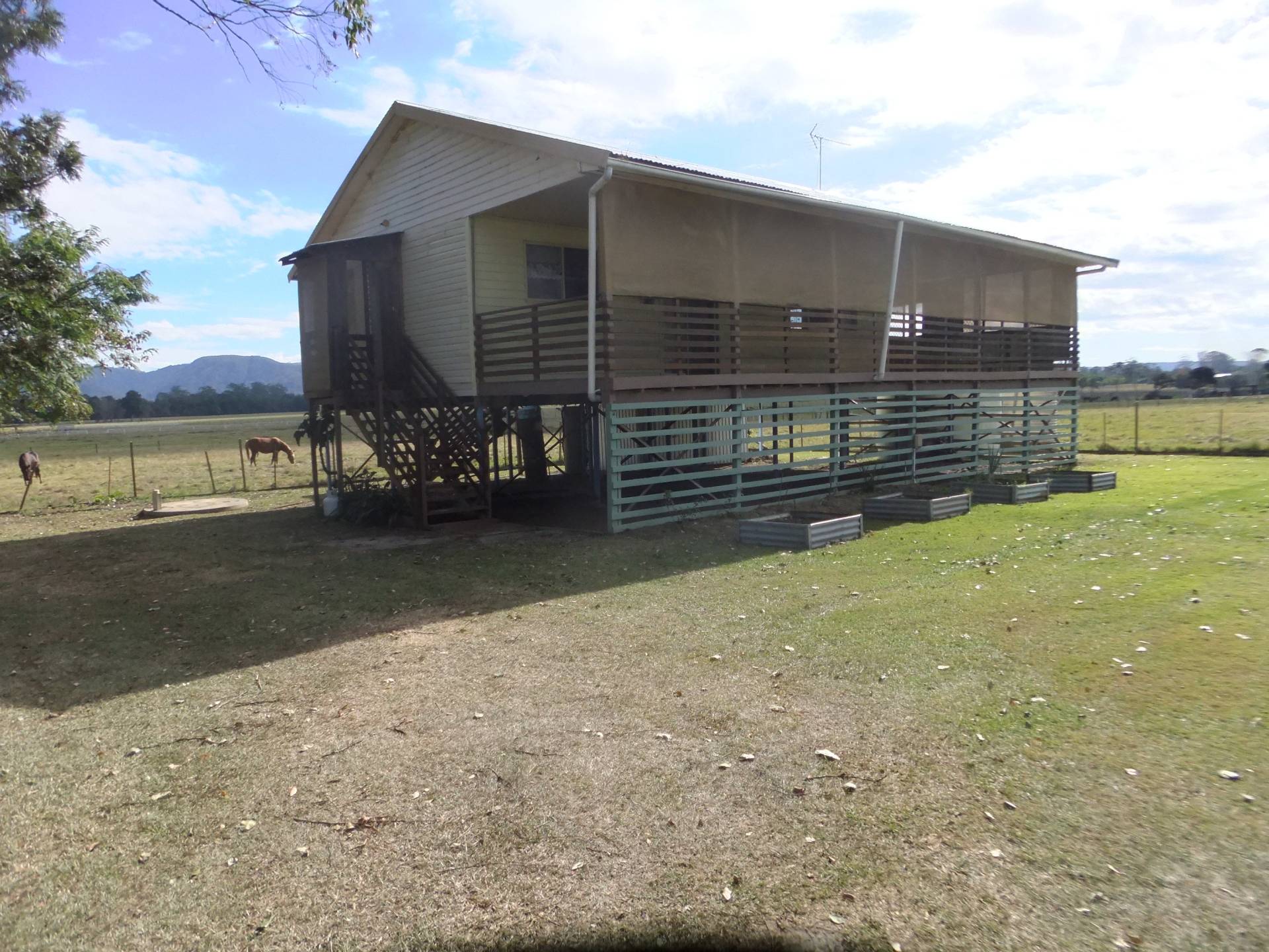 Highset 3 bedroom home with 1 bathroom. Polished floors throughout and ceiling fans. Rural outlook