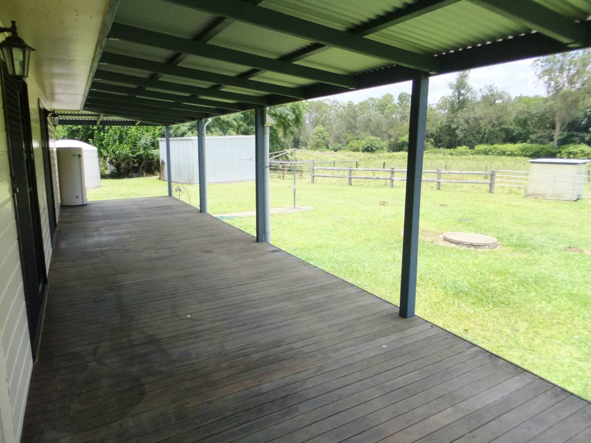 3 BEDROOM HOME WITH BUILT IN ROBES IN ALL ROOMS. TIMBER FLOOR THORUGHOUT. MODERN KITCHEN. AIR CONDITIONER. FULLY SECURITY SCREENED. VERANDAHS ON 3 SIDES. PADDOCKS ALL AROUND. NO CLOSE NEIGHBOURS. IF YOU ARE LOOKING FOR PEACE AND QUIET WELL THIS IS IT. LOOK OUT ANY WINDOW TO SEE FARM LAND BUT WITH ONLY A LARGE HOUSE BLOCK TO MAINTAIN. FEEL LIKE YOUR ON ACREAGE WITHOUT THE HARD WORK. DOUBLE CARPORT ATTACHED TO HOUSE AND A DOUBLE GARAGE.