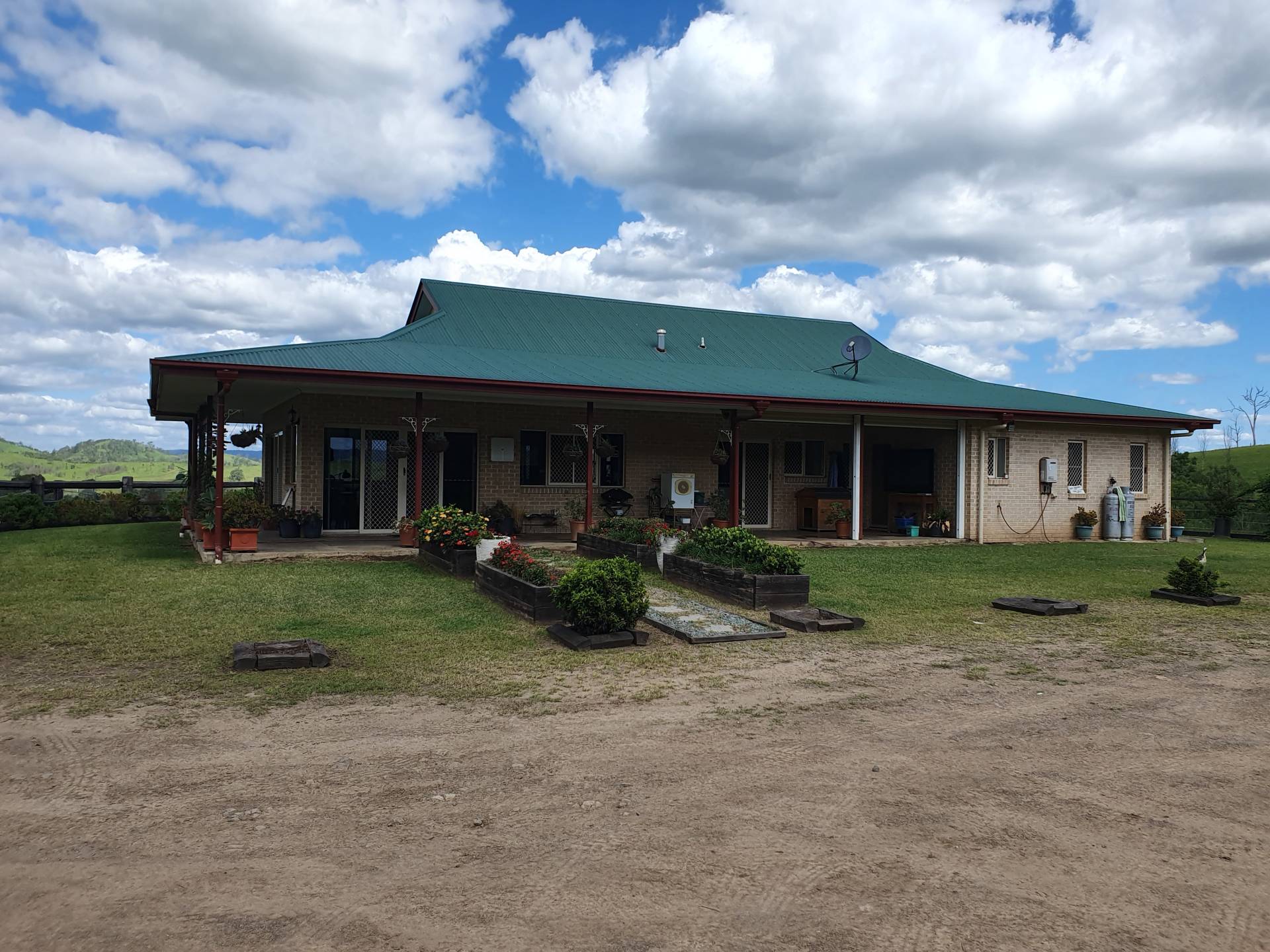 This property has a very good colonial style brick home overlooking the valley. Having three bedrooms plus study or fourth bedroom, 2 bathrooms, open plan kitchen, dining and lounge and verandahs on three sides and a great entertainment area.
